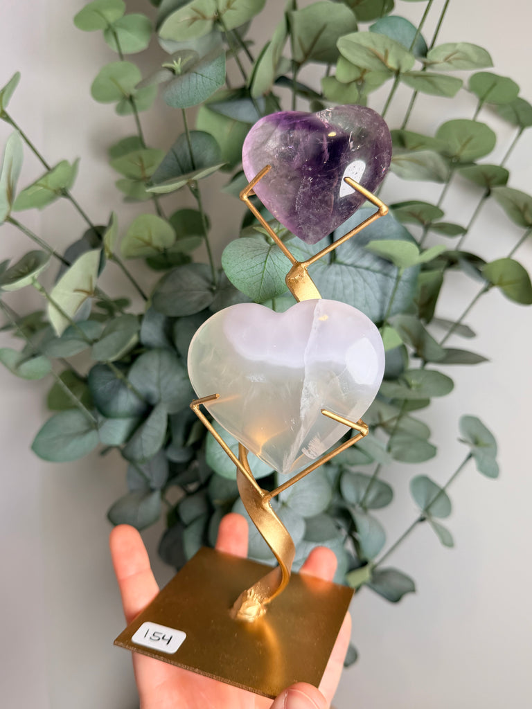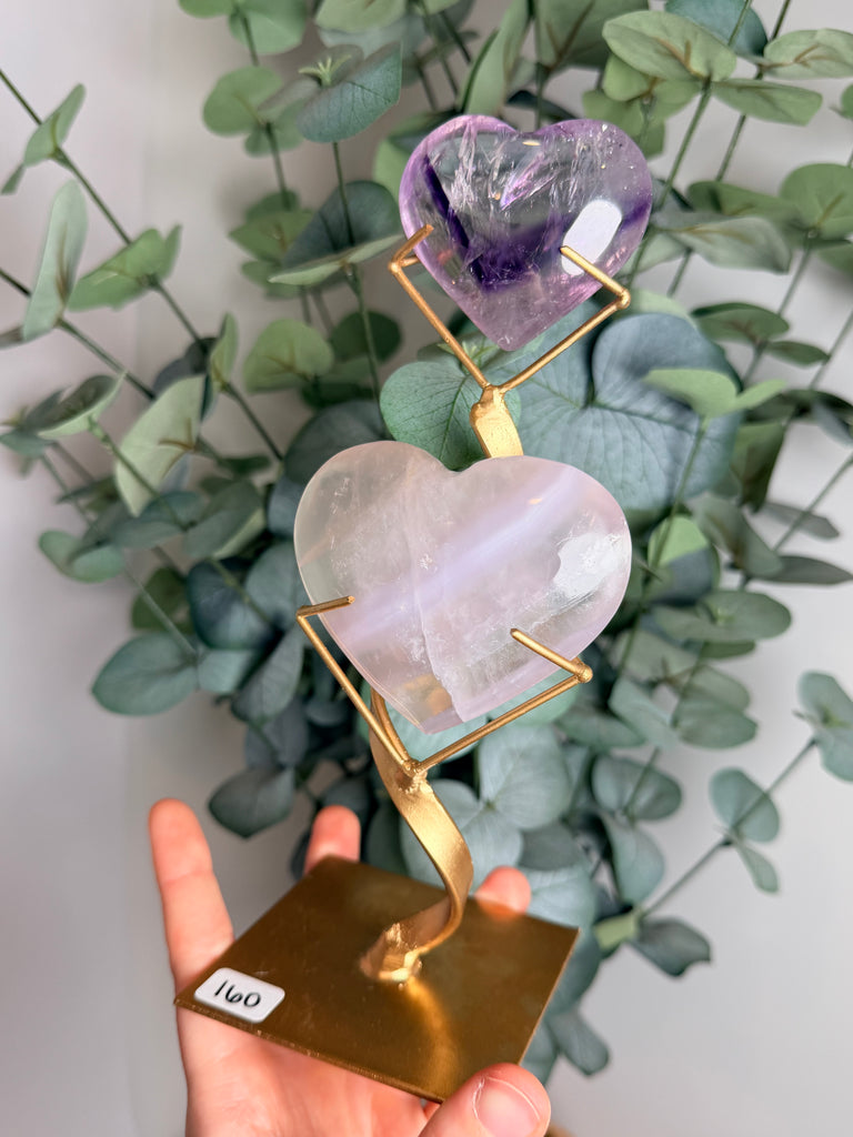 Phantom Amethyst x Yttrium Fluorite Heart w/ Stand - you pick