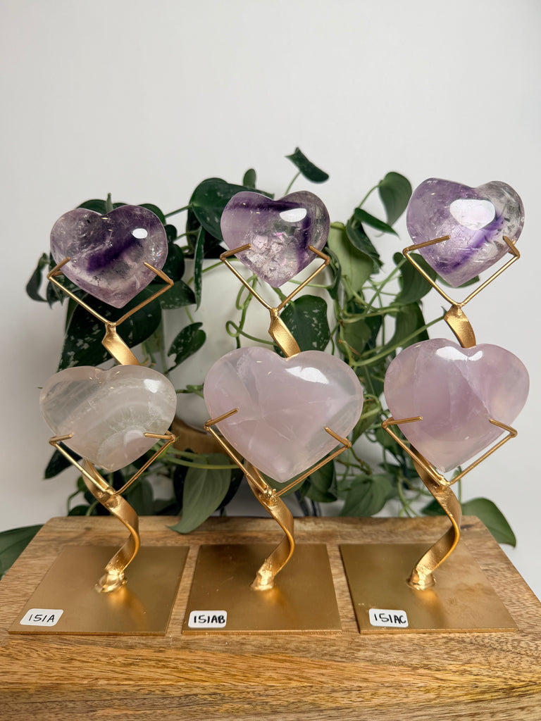 Phantom Amethyst x Yttrium Fluorite Heart w/ Stand - you pick