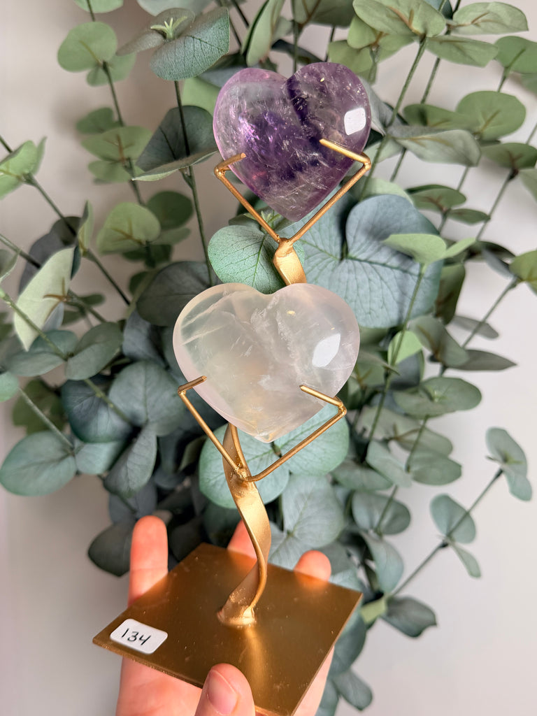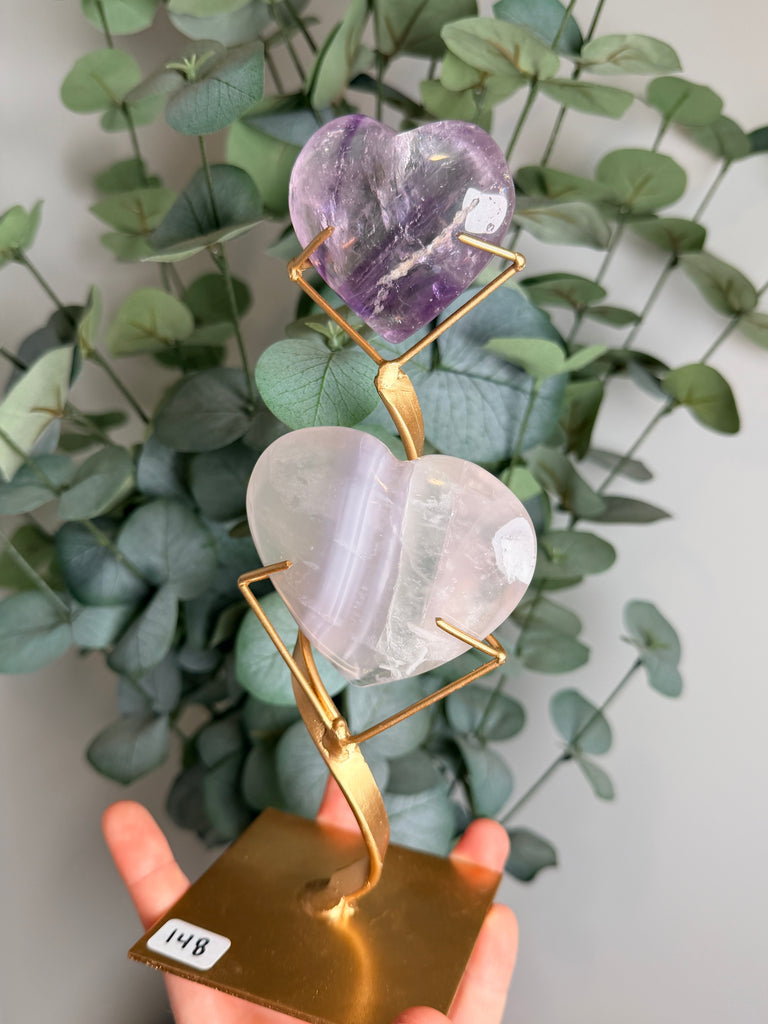 Phantom Amethyst x Yttrium Fluorite Heart w/ Stand - you pick