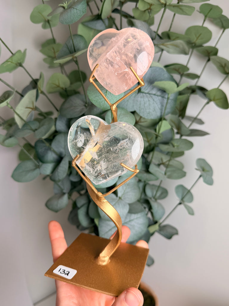 Rose x Clear Quartz Hearts w/ Stand - you pick