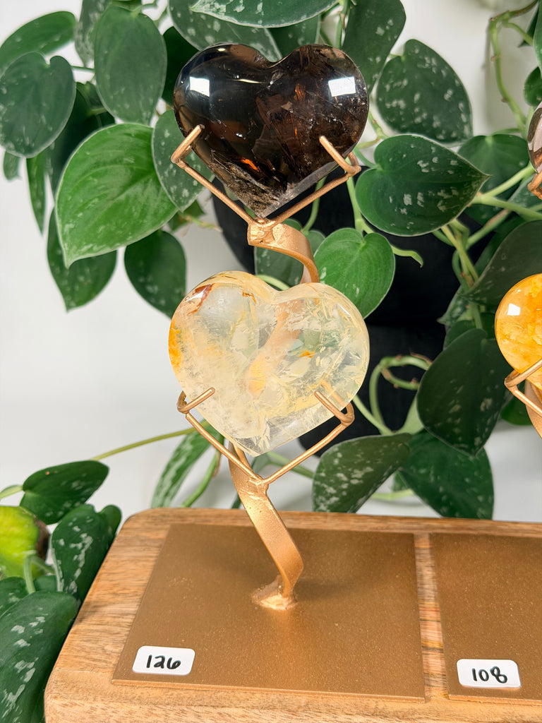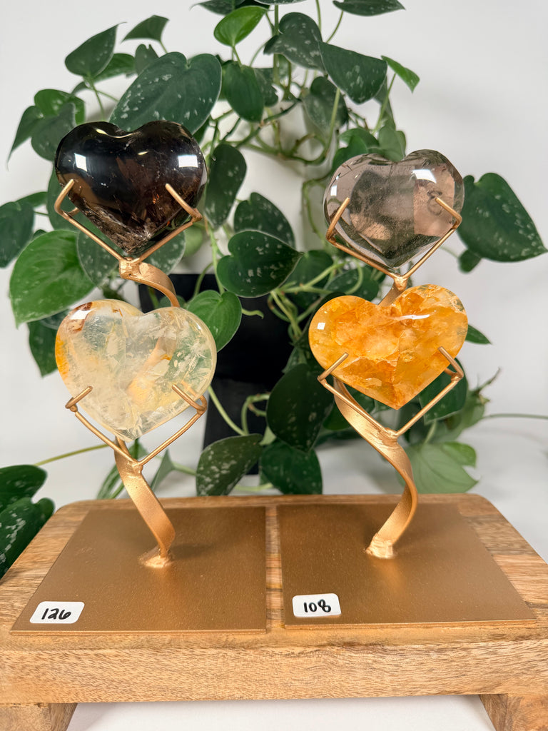 Smoky Quartz x Golden Healer Heart w Stand - you pick