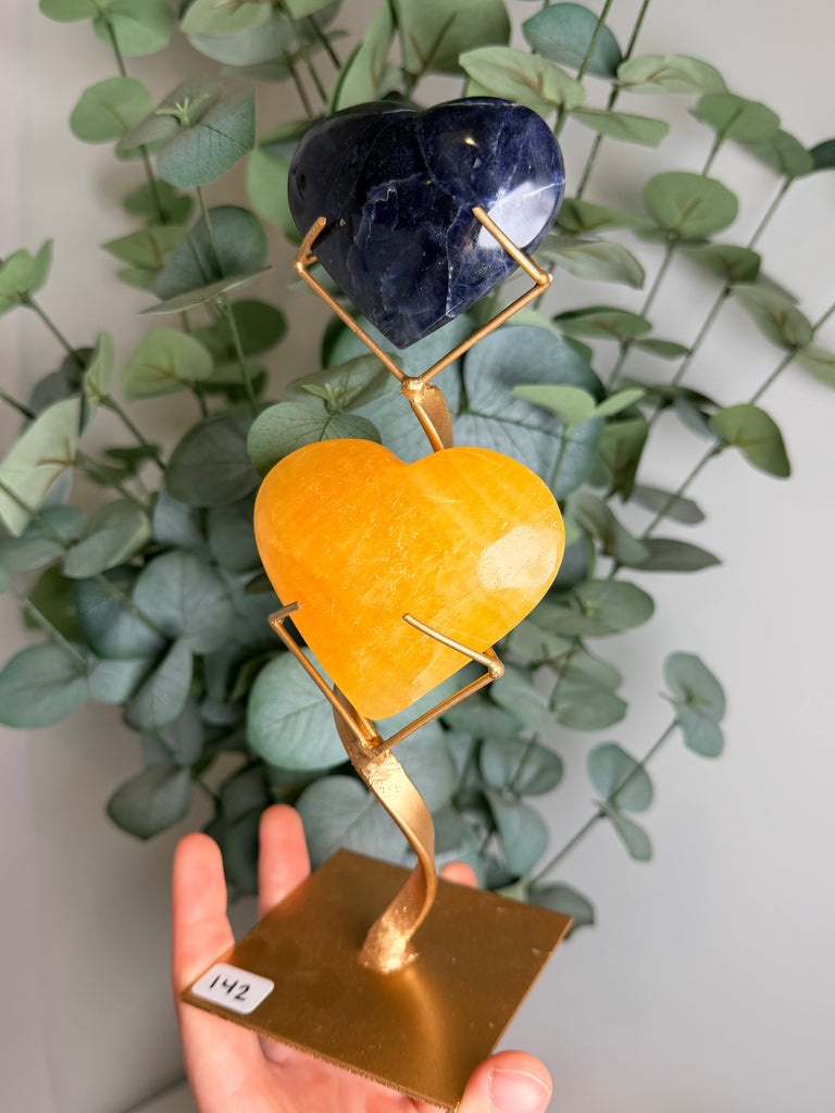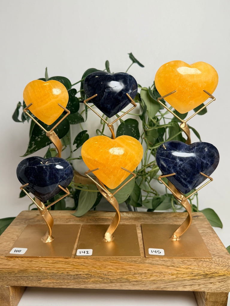 Sodalite x Calcite Hearts w/ Stand - you pick