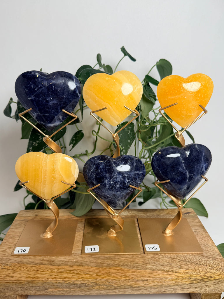 Sodalite x Calcite Hearts w/ Stand - you pick