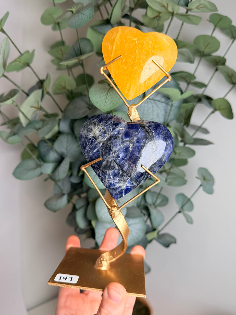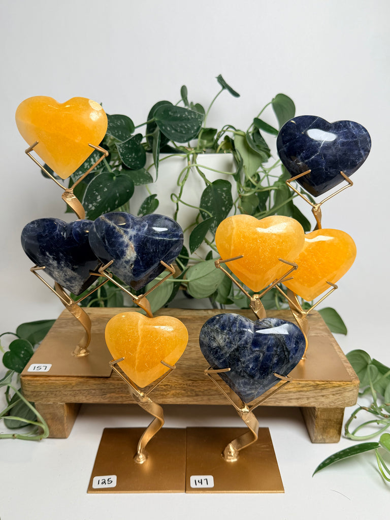 Sodalite x Calcite Hearts w/ Stand - you pick